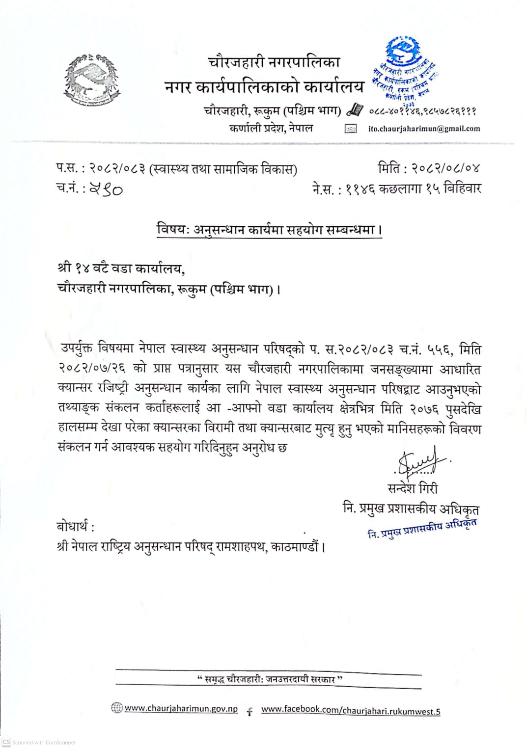 Home » अनुसन्धान कार्यमा सहयोग सम्बन्धमा !