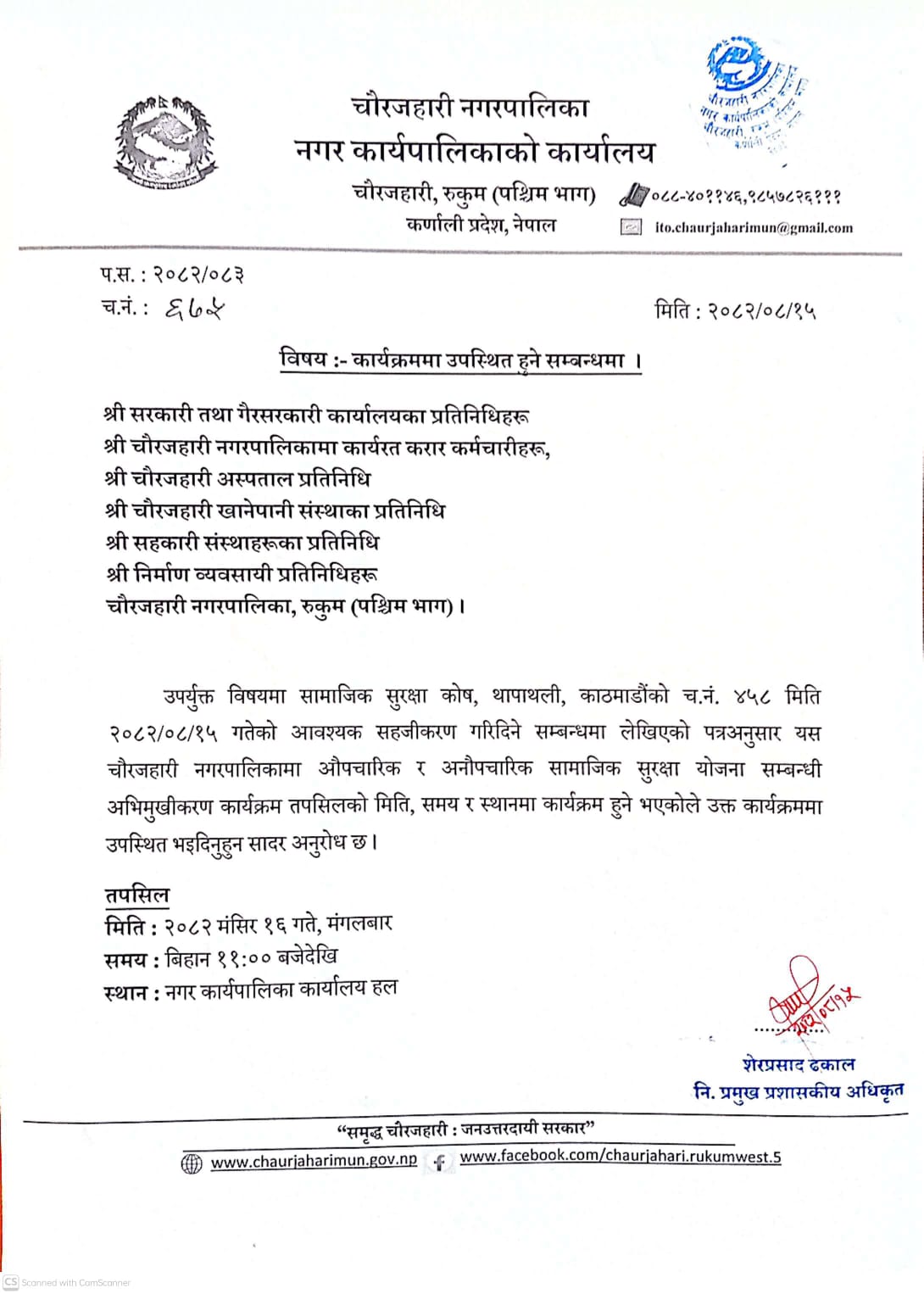 कार्यक्रममा उपस्थित हुने सम्बन्धी सूचना !