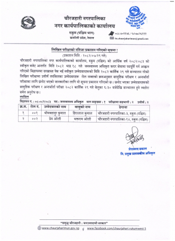 Home » लिखित नतिजा प्रकाशन गरिएको सम्बन्धमा ।