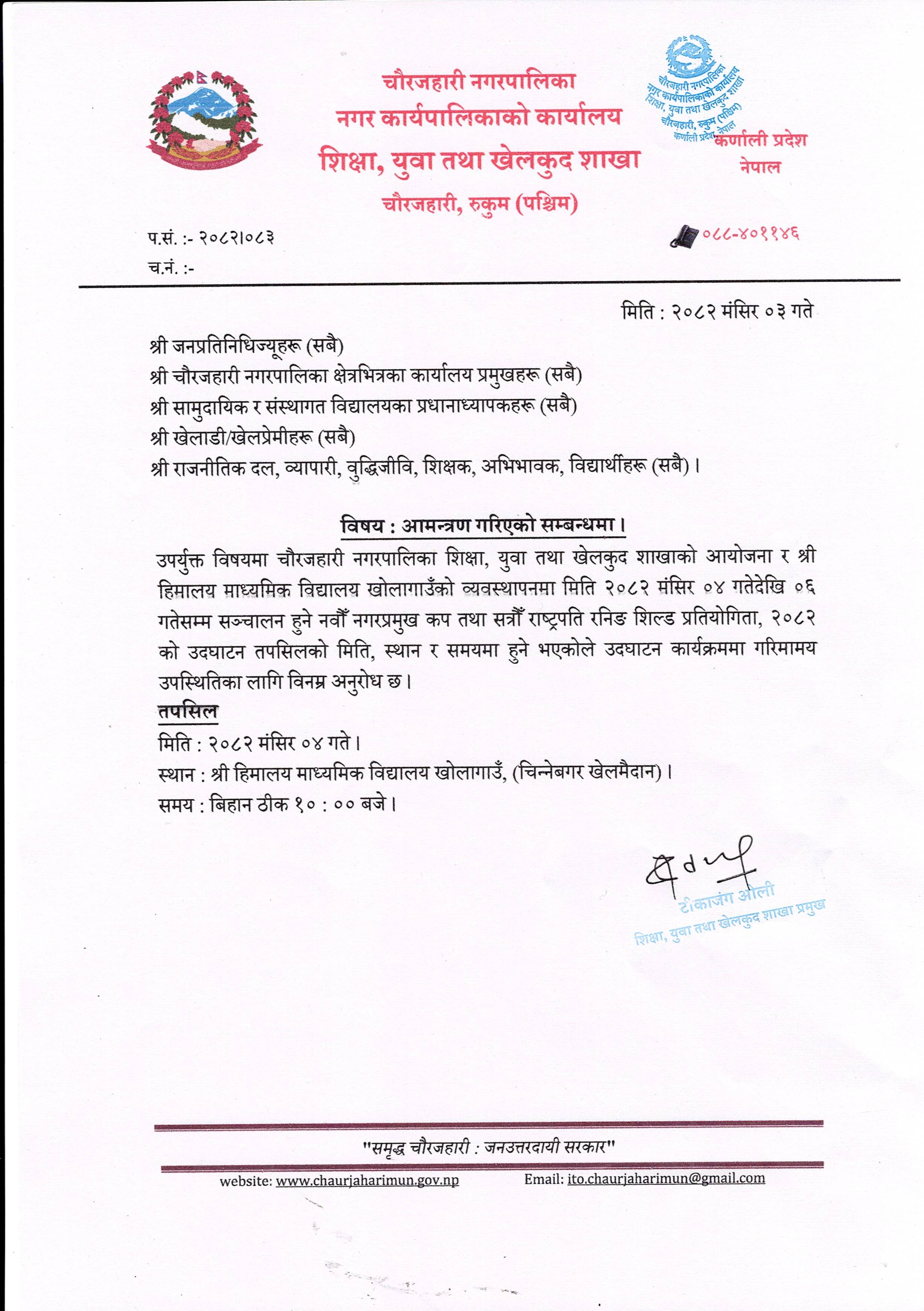आमन्त्रण गरिएको सम्बन्धमा !