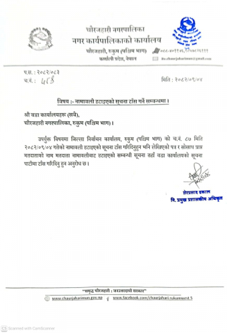 Home » नामावली हटाइएको सूचना टाँस गर्ने सम्बन्धमा !