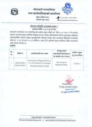 Home » बोलपत्र स्वीकृति आशयको सूचना !