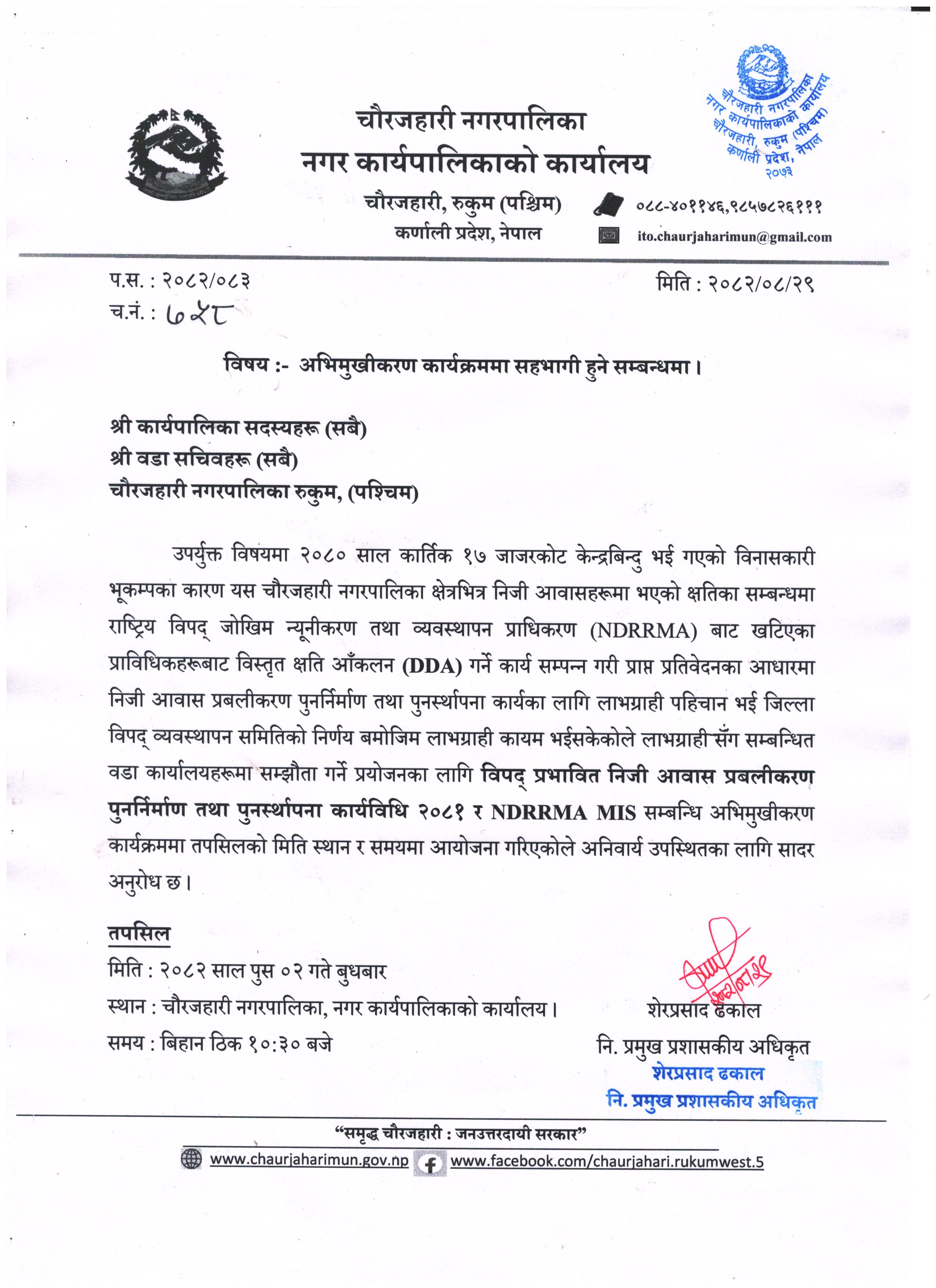 Home » अभिमुखीकरण कार्यक्रममा उपस्थित हुने सम्बन्धमा ।