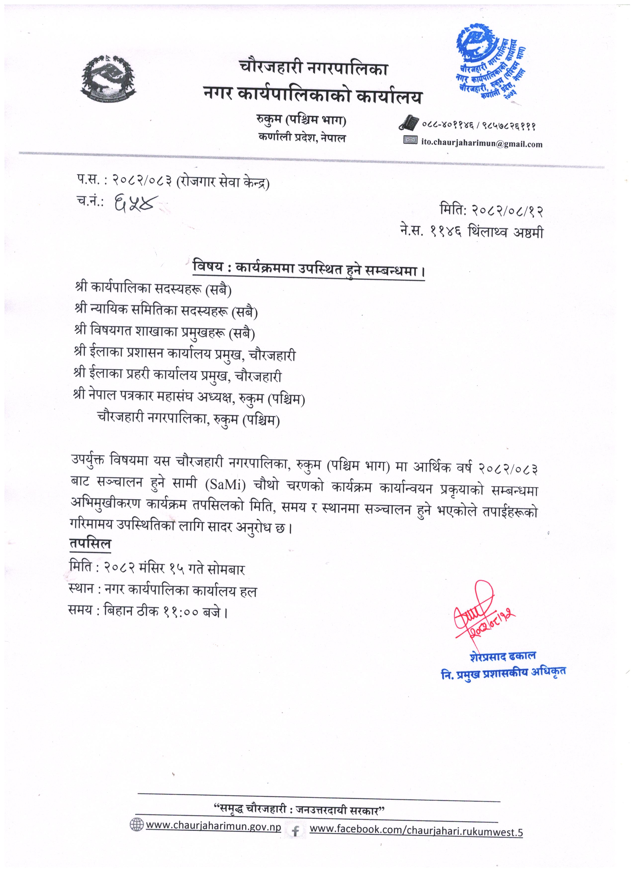 Home » कार्यक्रममा उपस्थित हुने सम्बन्धमा ।