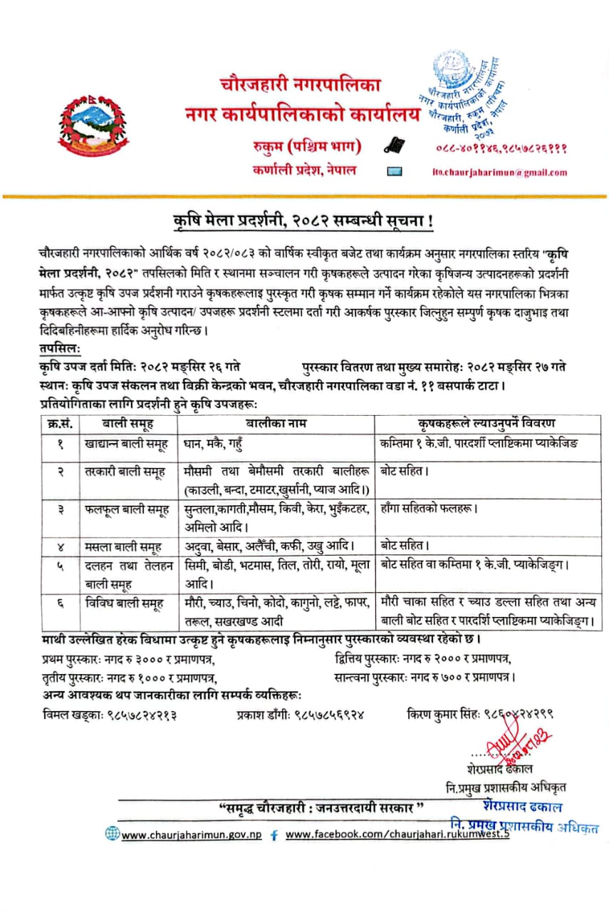Home » कृषि मेला प्रदर्शनी,२०८२ सम्बन्धी सूचना !