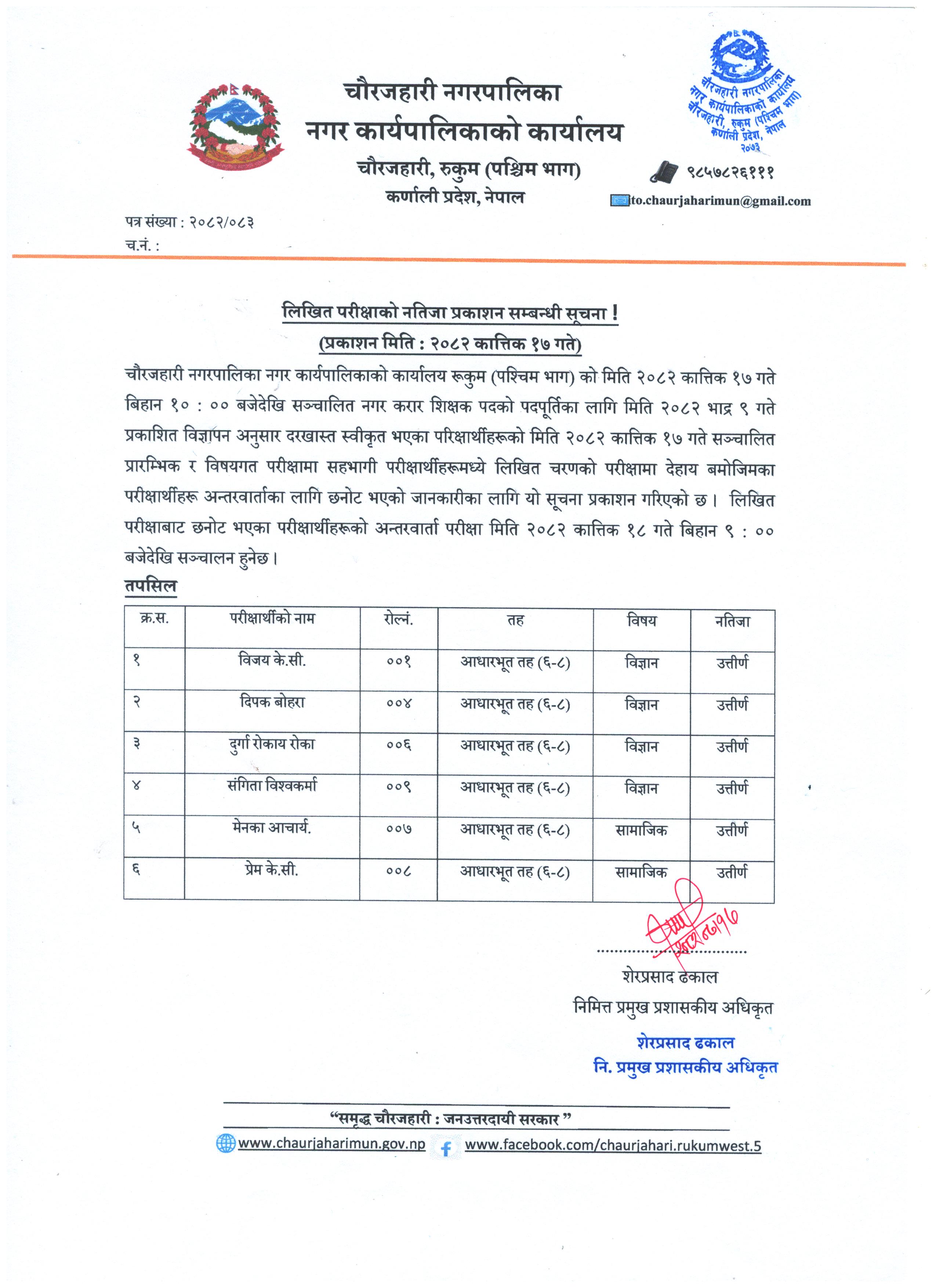 Home » लिखित परीक्षाको नतिजा प्रकाशन गरिएको सूचना !