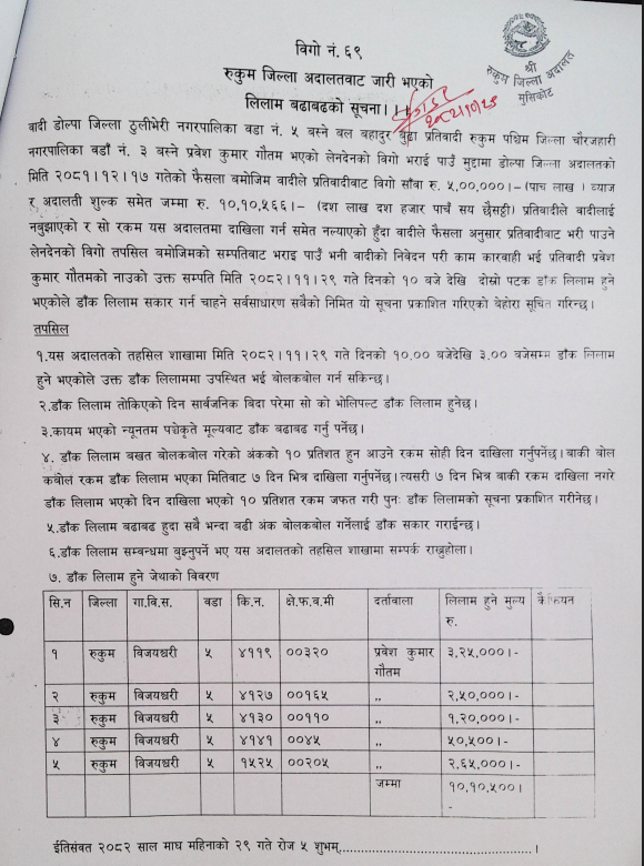 Home » लिलाम बढाबढको सूचना !