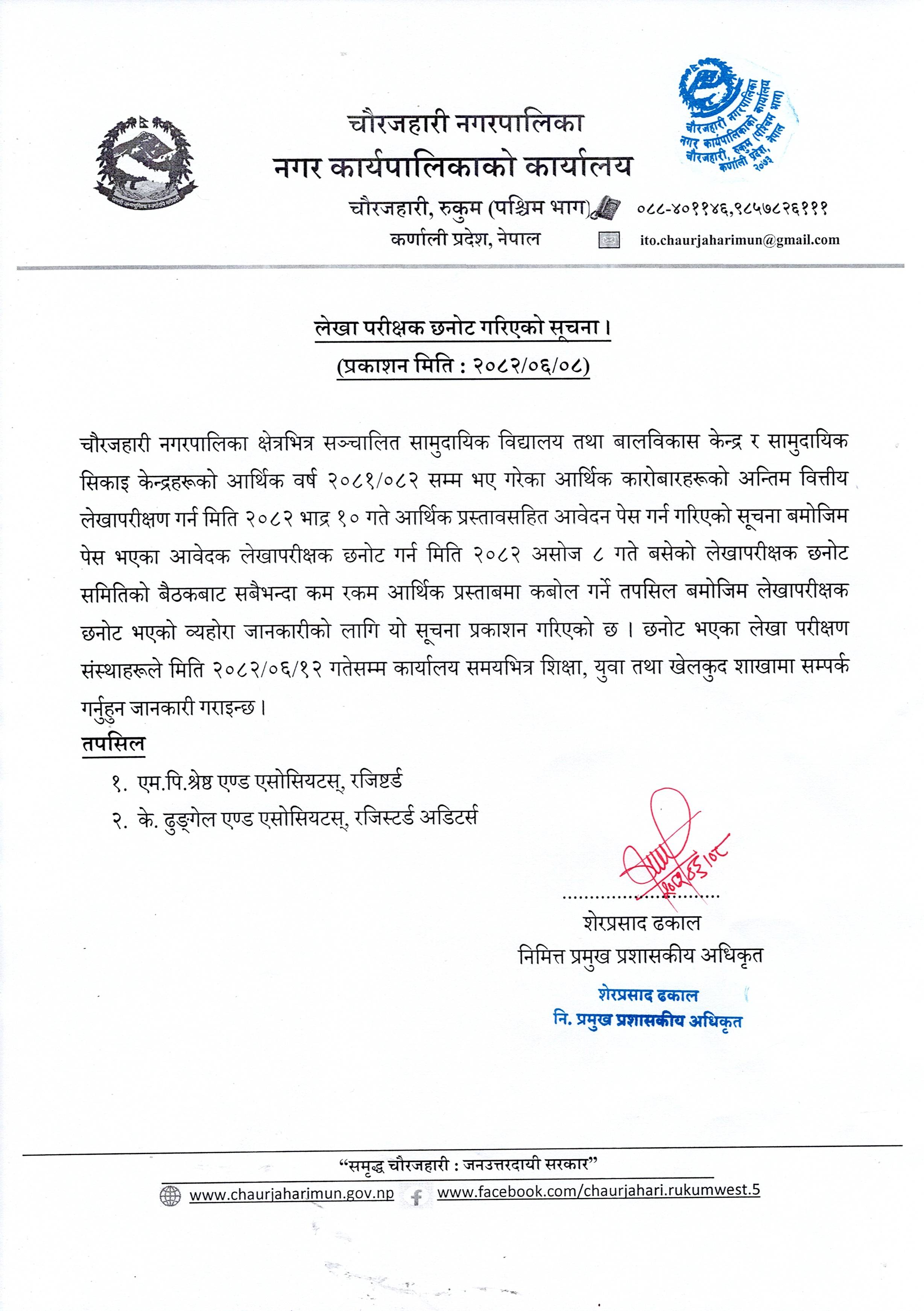 Home » लेखा परीक्षक छनोट गरिएको सूचना !