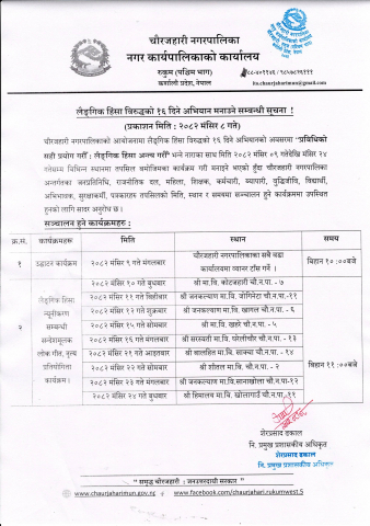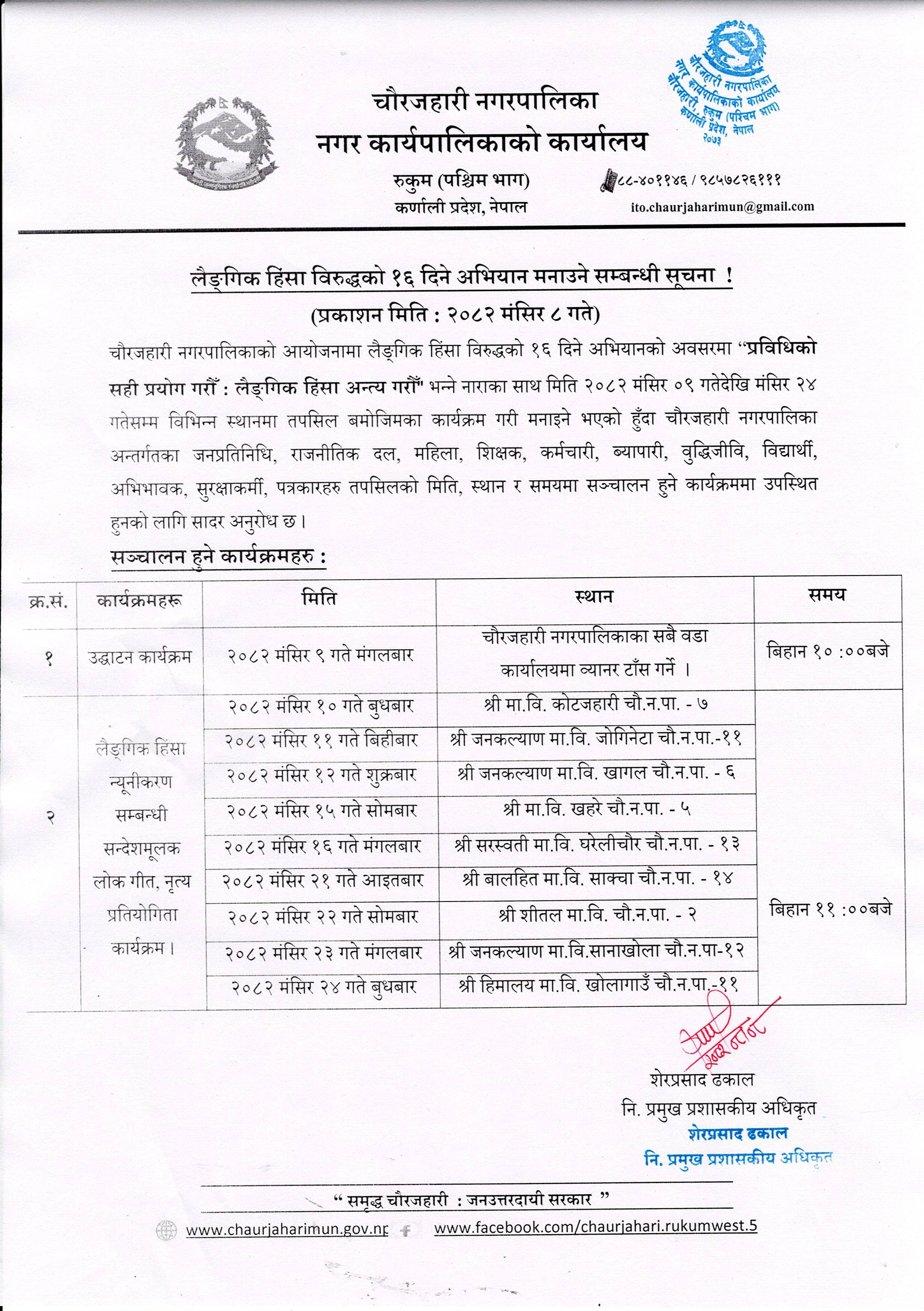 Home » लैङ्गिक हिंसा विरुद्धको १६ दिने अभियान मनाउने सम्बन्धी सूचना !