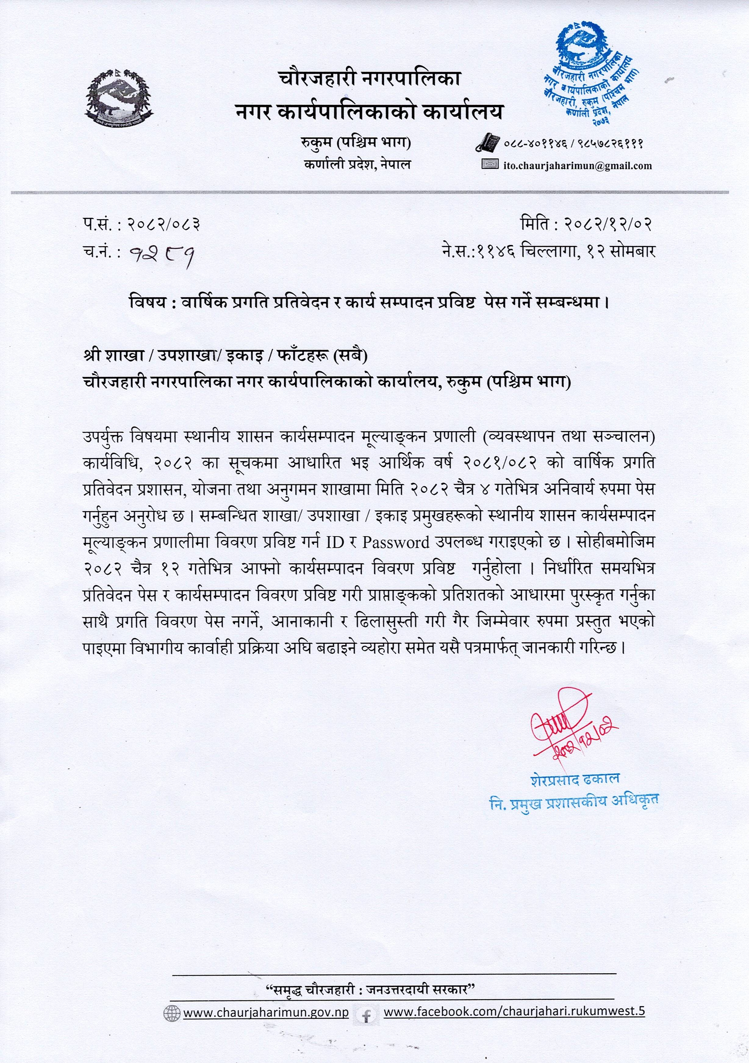 Home » वार्षिक प्रगति प्रतिवेदन र कार्य सम्पादन प्रविष्ट पेस गर्ने सम्बन्धमा !